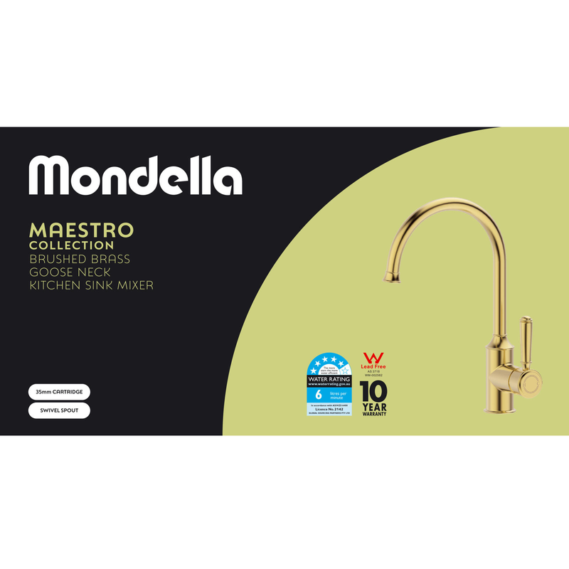 Goose Neck Kitchen Sink Mixer Brushed Brass Maestro