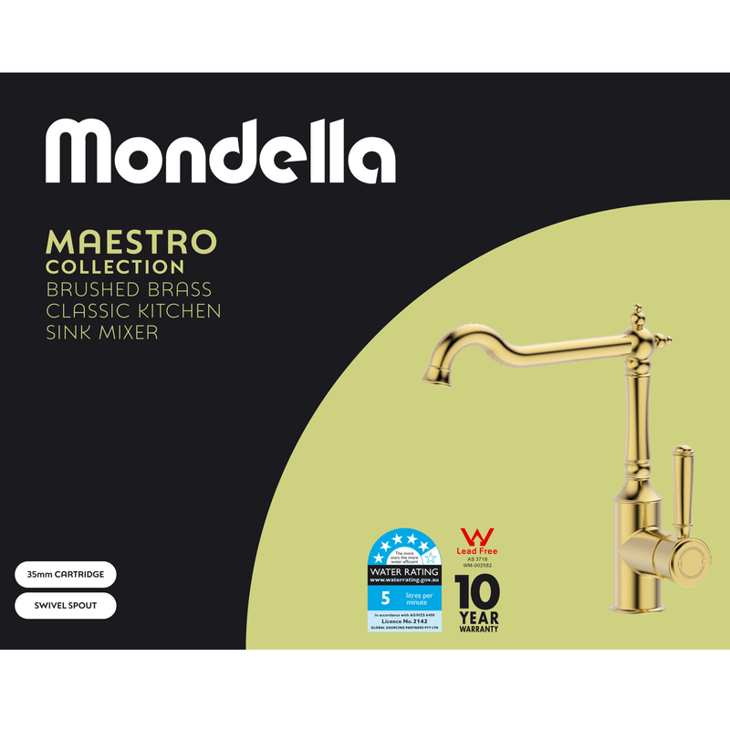 Classic Kitchen Sink Mixer Brushed Brass Maestro