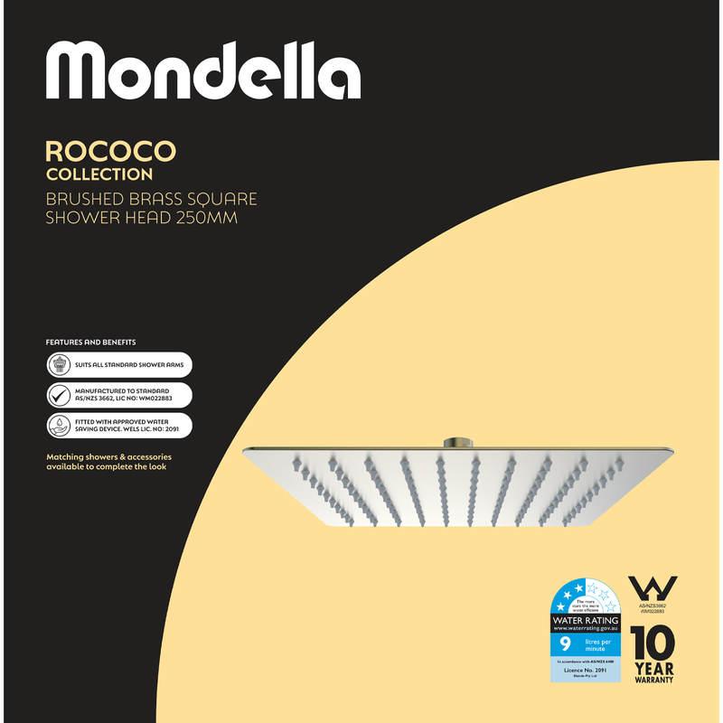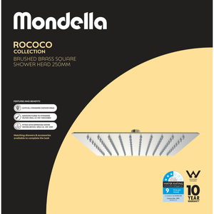 Mondella 250mm Brushed Brass Rococo Square Shower Head