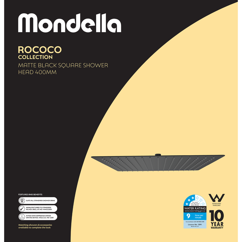 Mondella 400mm Black Matte Rococo Square Shower Head