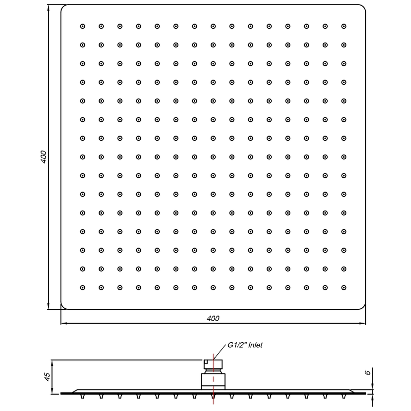 Square Shower Head 400mm Matte Black Rococo