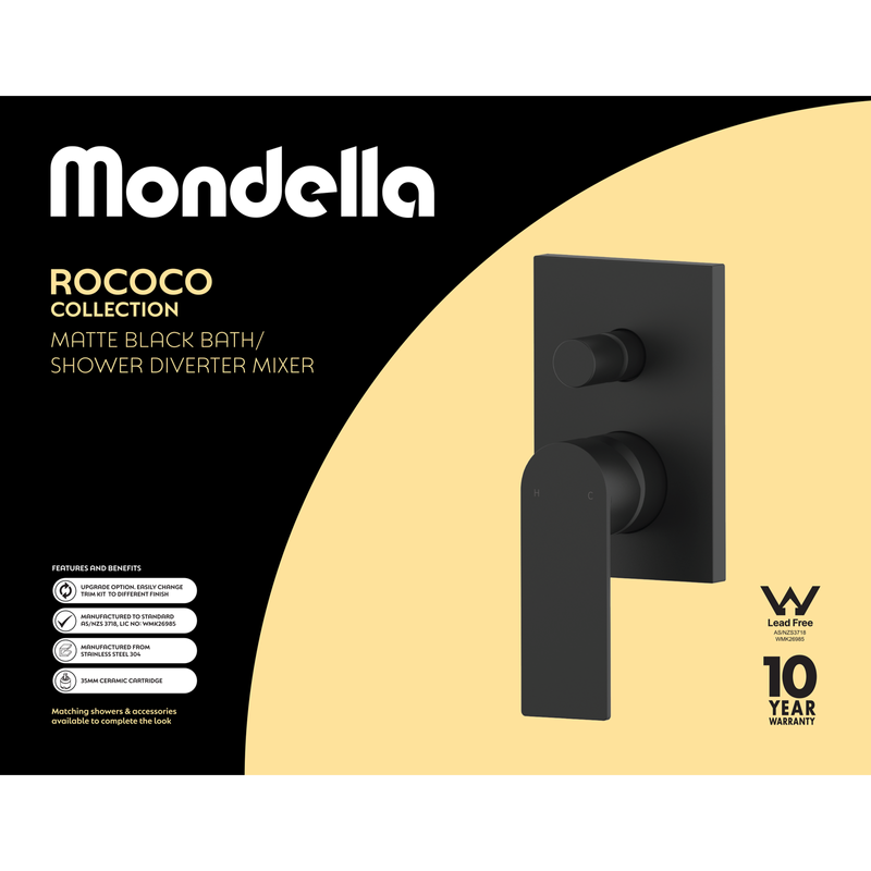 Mondella Rococo Bath/Shower Diverter Mixer Matte Black