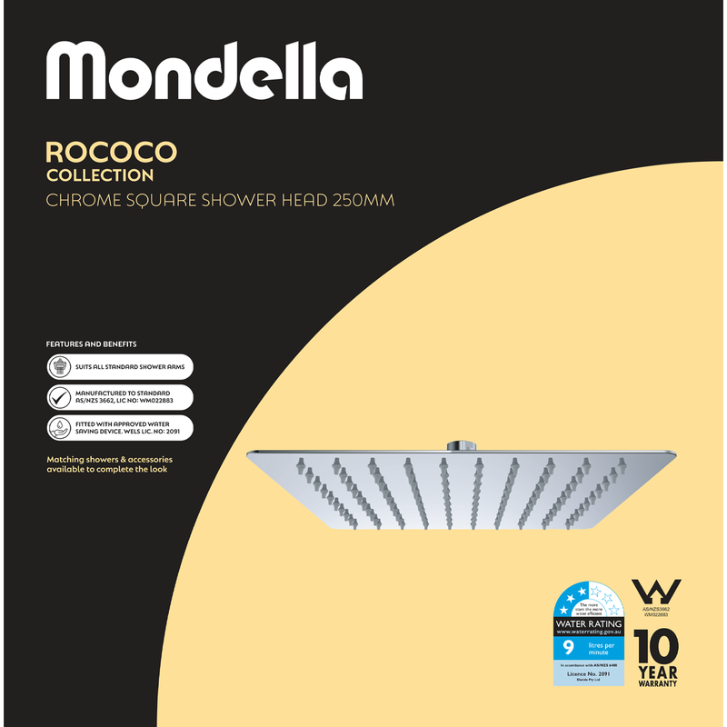Square Shower Head 250mm Chrome Rococo