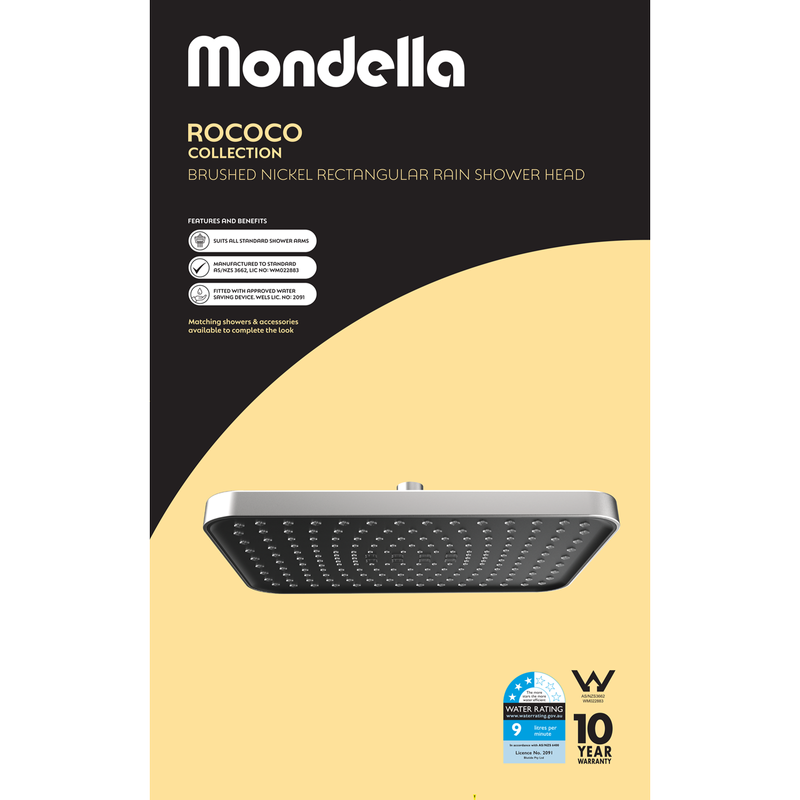 Mondella Brushed Nickel Rococo Rectangular Rain Shower Head